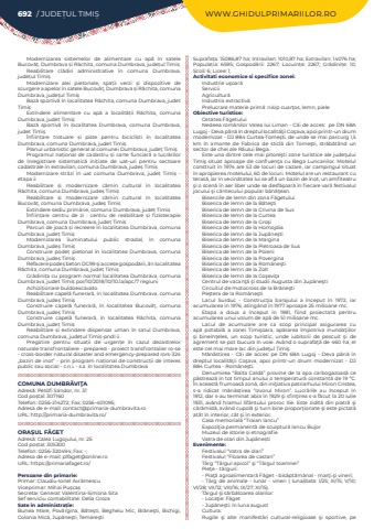 692 / JUDE%u021aUL TIMI%u0218 WWW.GHIDULPRIMARIILOR.ROModernizarea sistemelor de alimentare cu ap%u0103 %u00een satele Bucov%u0103%u021b, Dumbrava %u0219i R%u0103chita, comuna Dumbrava, jude%u021bul Timi%u0219Reabilitare cl%u0103diri administrative %u00een comuna Dumbrava, jude%u021bul Timi%u0219Modernizare alei pietonale, spa%u021bii verzi %u0219i dispozitive de scurgere a apelor %u00een satele Bucov%u0103%u021b, Dumbrava %u0219i R%u0103chita, comuna Dumbrava, jude%u021bul Timi%u0219Baz%u0103%u00a0sportiv%u0103%u00a0%u00een localitatea R%u0103chita, comuna Dumbrava, judet Timi%u0219Extindere alimentare cu ap%u0103%u00a0 a localit%u0103%u021bii R%u0103chita, comuna Dumbrava, judet Timi%u0219Baz%u0103%u00a0 sportiv%u0103%u00a0 %u00een localitatea Dumbrava, comuna Dumbrava, judet Timi%u0219%u00cenfiin%u021bare trotuare %u0219i piste pentru bicicli%u0219ti %u00een localitatea Dumbrava, comuna Dumbrava, judet Timi%u0219Planul urbanistic general al comunei Dumbrava, jude%u021b%u00a0Timi%u0219Programul na%u021bional de cadastru %u0219i carte funciar%u0103%u00a0a lucr%u0103rilor de %u00eenregistrare sistematic%u0103%u00a0 ini%u021biate de uat-uri pentru sectoare cadastrale %u00een extravilan, comuna Dumbrava, jude%u0219%u00a0Timi%u0219Modernizare str%u0103zi %u00een uat comuna Dumbrava, jude%u021b%u00a0 Timi%u0219%u00a0 - etapa iiReabilitare %u0219i modernizare c%u0103min cultural %u00een localitatea R%u0103chita, comuna Dumbrava, jude%u0219%u00a0Timi%u0219Reabilitare %u0219i modernizare c%u0103min cultural %u00een localitatea Bucov%u0103%u021b, comuna Dumbrava, jude%u0219%u00a0Timi%u0219Extindere sediu prim%u0103rie, comuna Dumbrava, jude%u021b%u00a0Timi%u0219%u00cenfiin%u021bare centru de zi : centru de reabilitare %u0219i fizioterapie Dumbrava, comuna Dumbrava, jude%u021b%u00a0Timi%u0219Parcuri de joac%u0103%u00a0%u0219i recreere %u00een localitatea Dumbrava, comuna Dumbrava, jude%u021b%u00a0Timi%u0219Modernizarea iluminatului public stradal, %u00een comuna Dumbrava, jude%u0219%u00a0Timi%u0219Construire pode%u021b%u00a0 pietonal %u00een localitatea Dumbrava, comuna Dumbrava, jude%u0219%u00a0Timi%u0219Refacere pode%u0219%u00a0beton DC99 %u0219i accese gospod%u0103rii, %u0103n localitatea R%u0103chita, comuna Dumbrava, jude%u021b Timi%u0219Gr%u0103dini%u021ba cu program normal localitatea Dumbrava, comuna Dumbrava, judet Timi%u0219%u00a0por/10/2018/10/10.1a/apc/7 regiuniAchizi%u021bionare buldoexcavatoReabilitare capel%u0103%u00a0funerar%u0103, %u00een localitatea Dumbrava, comuna Dumbrava, jude%u0219%u00a0Timi%u0219Construire capel%u0103%u00a0 funerar%u0103, %u00een localitatea Bucov%u0103%u021b, comuna Dumbrava, jude%u0219%u00a0Timi%u0219Construire capel%u0103%u00a0 funerar%u0103, %u00een localitatea R%u0103chita, comuna Dumbrava, jude%u021b Timi%u0219Reabilitare %u0219i extindere dispensar uman %u00een satul Dumbrava, comuna Dumbrava, jude%u021bul Timi%u0219-pndl iiPregatire pentru situa%u021bii de urgen%u021be %u00een cazul dezastrelor naturale transfrontaliere - prepared - proiect transfrontalier ro-se - cross-border natural disaster and emergency-prepared rors-324 %u201ebazin de inot%u201d - prin program na%u021bional de construc%u021bii de interes public sau social - c.n.i. - s.a. %u00een localitatea DumbravaCOMUNA DUMBR%u0102VI%u0162AAdres%u0103: Pet%u00f6fi S%u00e1ndor, nr. 31Cod po%u0219tal: 307160Telefon: 0256-214272; Fax: 0256-401095; Adresa de e-mail: contact@primaria-dumbravita.roURL: http://primaria-dumbravita.ro/ORA%u0218UL F%u0102GETAdres%u0103: Calea Lugojului, nr. 25Cod po%u0219tal: 305300Telefon: 0256-320494; Fax: -; Adresa de e-mail: plfaget@online.roURL: https://primariafaget.ro/Persoane din primarie:Primar: Claudiu-Ionel Avr%u0103mescuViceprimar: Mihai Pu%u0219ca%u0219Secretar General: Valentina-Simona Sita%u0218ef serviciu contabilitate: Delia GrozaSate %u00een administra%u021bie:Bunea Mare, Pov%u00e2rgina, B%u0103te%u015fti, Begheiu Mic, Br%u0103ne%u015fti, Bichigi, Colonia Mic%u0103, Jup%u00e2ne%u015fti, Temere%u015ftiSuprafa%u021ba:%u00a015086,87 ha; Intravilan:%u00a01010,87 ha; Extravilan:%u00a014076 ha; Popula%u021bia:%u00a0 6595; Gospod%u0103rii:%u00a0 2267; Locuin%u021be:%u00a0 2267; Gr%u0103dini%u021be:%u00a0 10; %u0218coli:%u00a06; Licee:%u00a01; Activitati economice si specifice zonei:Industrie u%u015foar%u0103ServiciiAgricultur%u0103Industria extractiv%u0103Prelucrare materie prim%u0103: nisip cuar%u0163os, lemn, piele%u00a0Obiective turistice:Cetatea F%u0103getuluiNedeea rom%u00e2nilor Valea lui Liman - C%u0103i de acces:%u00a0 pe DN 68A Lugoj - Deva p%u00e2n%u0103 %u00een dreptul localit%u0103%u0163ii Co%u015fava, apoi printr-un drum modernizat - DJ 884 Curtea-Tome%u015fti, de unde se mai parcurg 1,5 km %u00een amonte de Fabrica de sticl%u0103 din Tome%u015fti, str%u0103b%u0103t%u00e2nd un sector de chei ale R%u00e2ului Bega.Este una dintre cele mai pitore%u015fti zone turistice ale jude%u0163ului Timi%u015f situat aproape de confluen%u0163a cu Bega Luncanilor. Motelul construit %u00een 1974 are 53 de locuri de cazare, iar campingul situat %u00een apropierea motelului, 60 de locuri. Motelul are un restaurant cu teras%u0103, iar %u00een vecin%u0103tatea lui se afl%u0103 un bazin de %u00eenot, un amfiteatru %u015fi o scen%u0103 %u00een aer liber unde se desf%u0103%u015foar%u0103 %u00een fiecare var%u0103 festivalul jocului %u015fi c%u00e2ntecului popular b%u0103n%u0103%u0163ean.Bisericile de lemn din zona F%u0103getuluiBiserica de lemn de la B%u0103te%u015ftiBiserica de lemn de la Crivina de SusBiserica de lemn de la CurteaBiserica de lemn de la Gro%u015fiBiserica de lemn de la HomojdiaBiserica de lemn de la Jup%u00e2ne%u015ftiBiserica de lemn de la MarginaBiserica de lemn de la Pietroasa de SusBiserica de lemn de la PoieniBiserica de lemn de la PoverginaBiserica de lemn de la Rom%u00e2ne%u015ftiBiserica de lemn de la ZoltBiserica de lemn de la Co%u015fevi%u0163a%u00a0Centrul de vacan%u0163%u0103 %u015fi studii Augusta din Jup%u00e2ne%u015ftiCircuitul de moto